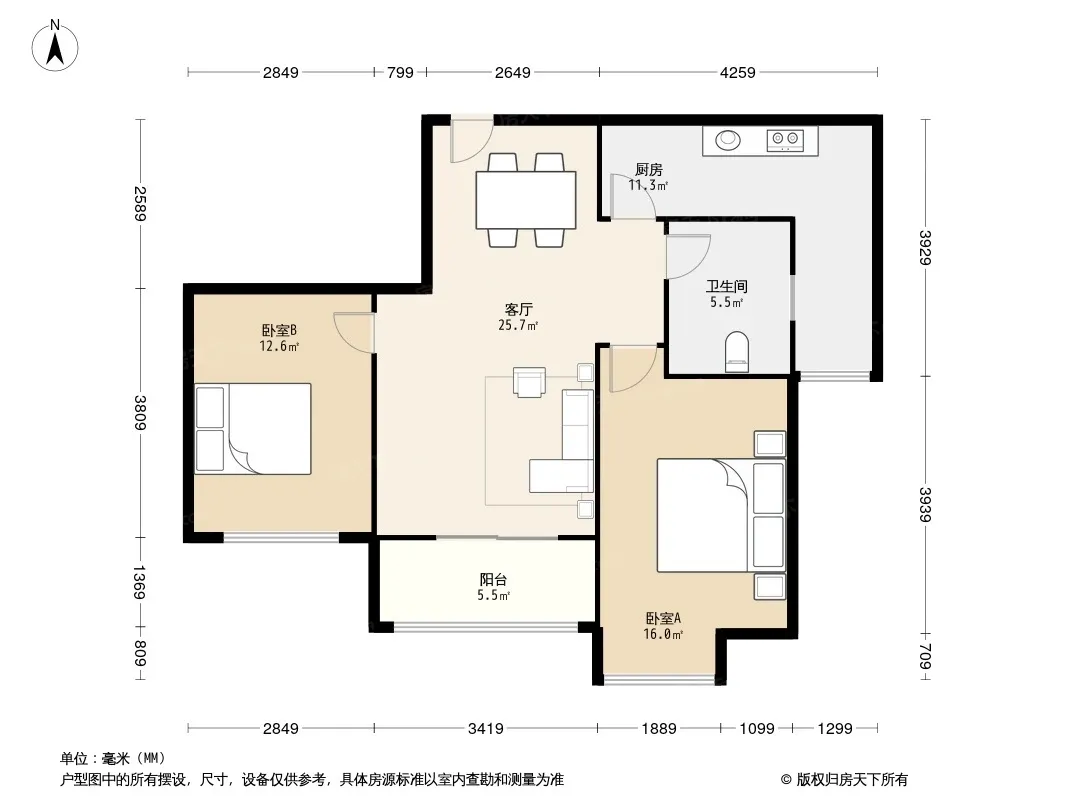 户型齐全,主打二居