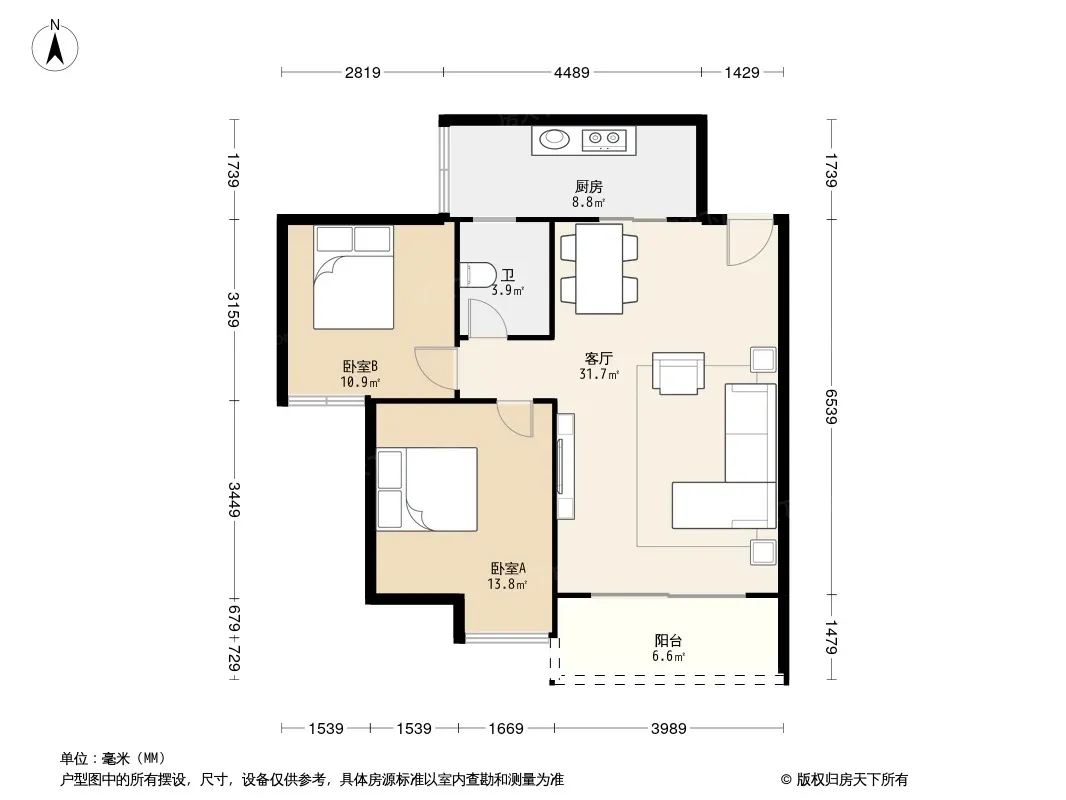 户型齐全,主打明卫,客厅朝南二居