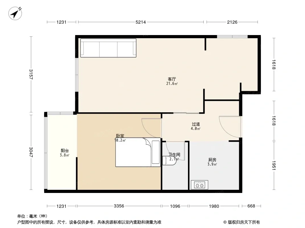 户型齐全,主打客厅朝南二居