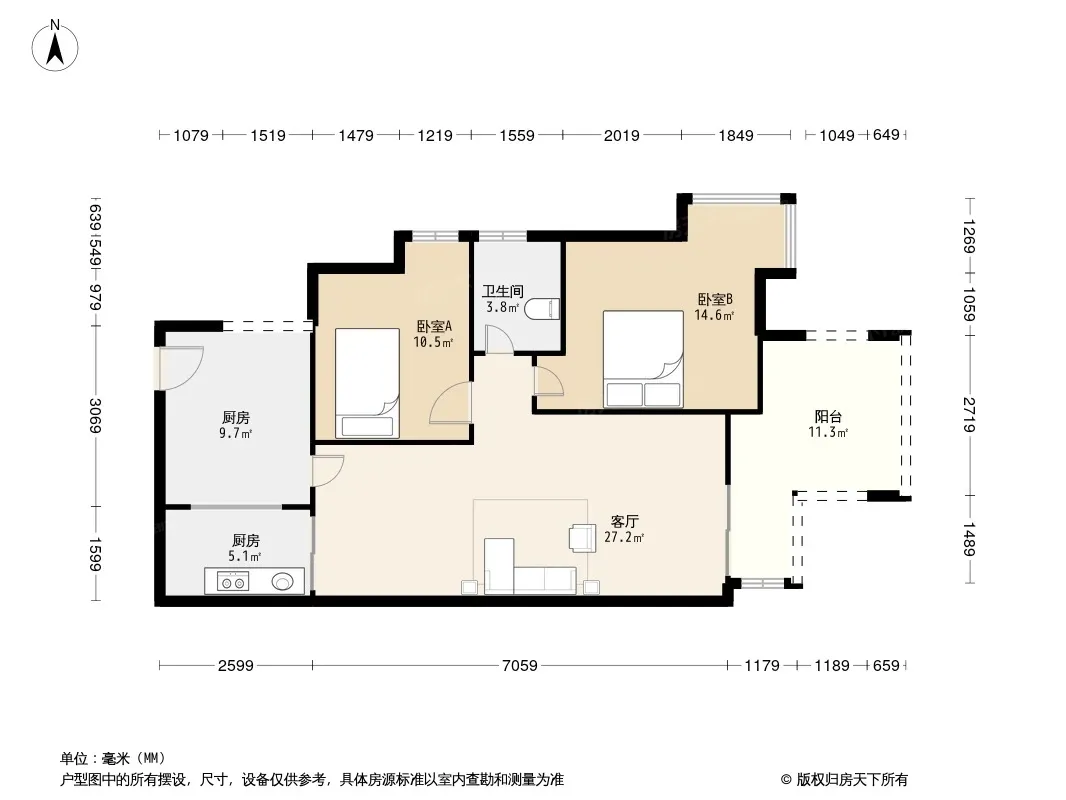 户型齐全,主打户型方正,明厨,明卫,客厅朝南,全明格局,主卧朝南三居