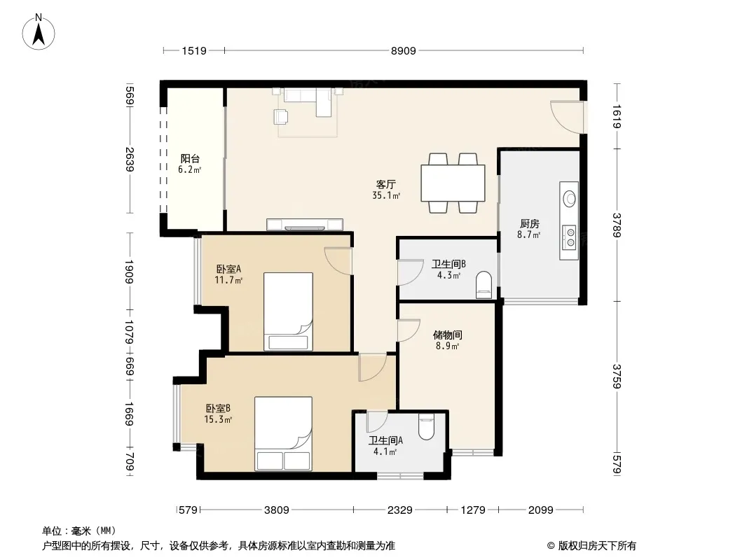 户型齐全,主打户型方正,明卫三居