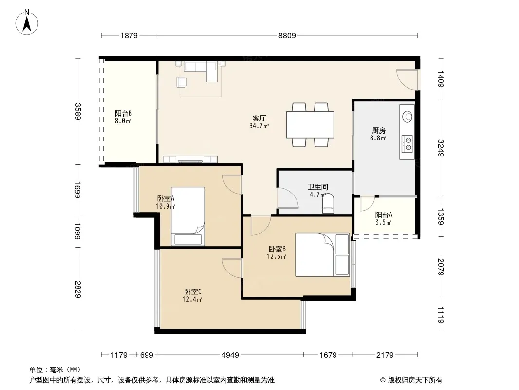 户型齐全,主打户型方正,明卫三居