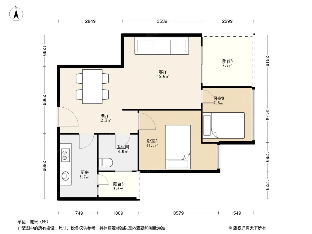 户型齐全,主打户型方正,客厅朝南二居