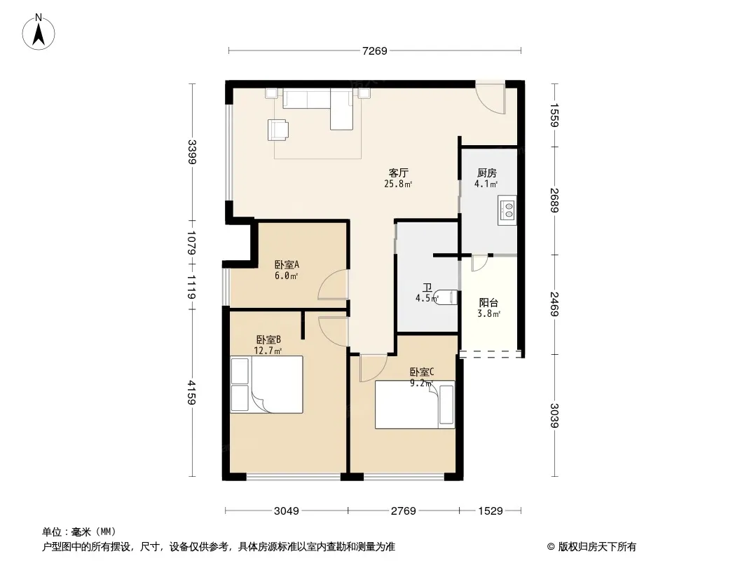 *获取完整户型报告,同时会有免费语音讲解服务