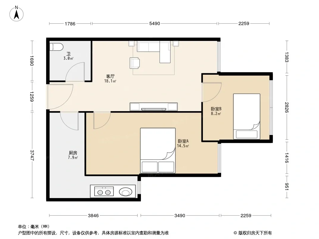 户型齐全,主打明卫,明厨,客厅朝南,全明格局三居
