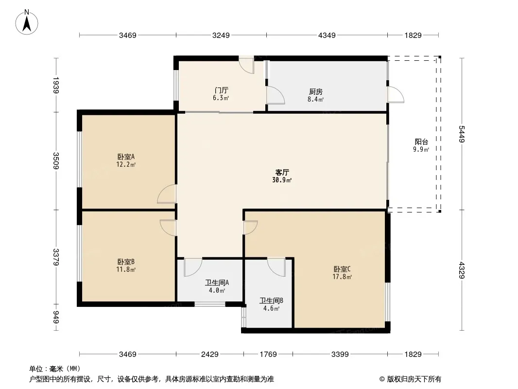 *获取完整户型报告,同时会有免费语音讲解服务