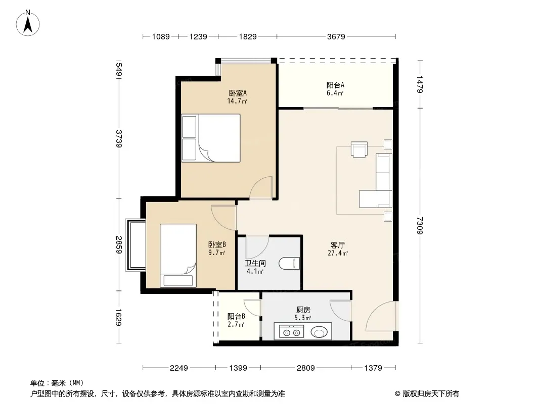 户型齐全,主打户型方正,主卧朝南二居