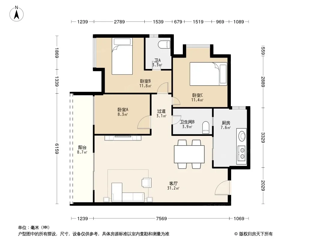 *获取完整户型报告,同时会有免费语音讲解服务
