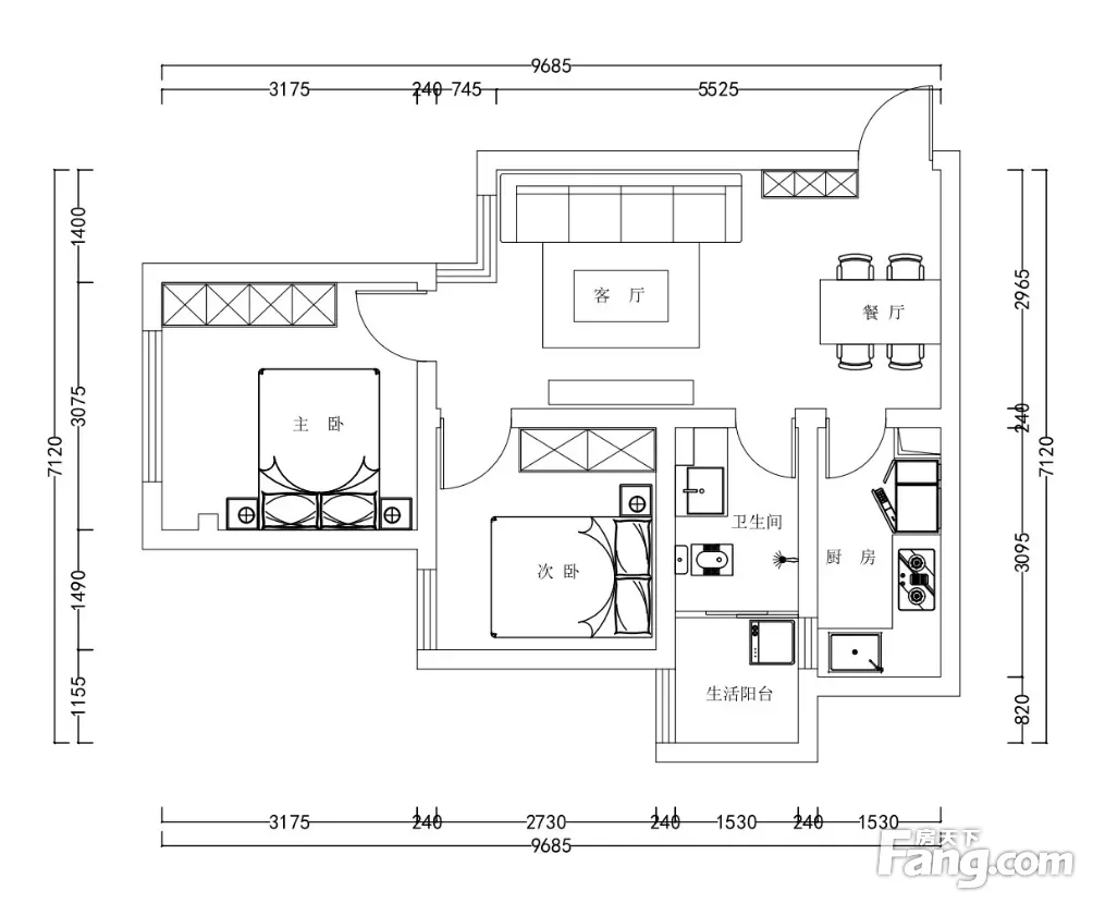 近南滨路正规2房,看房方便,业主诚心出售,户型方正