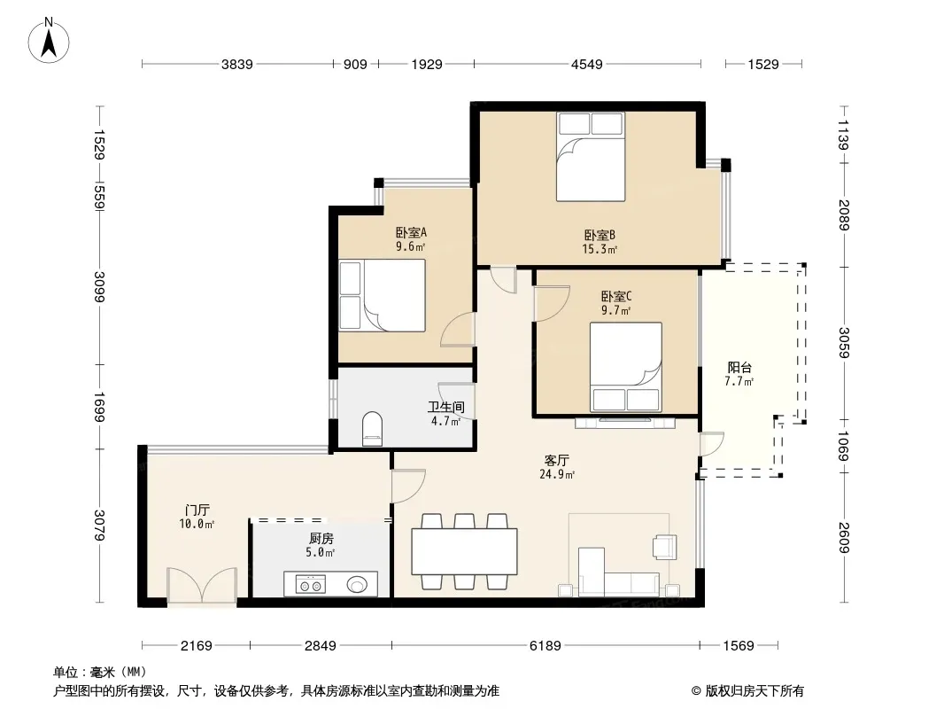 户型齐全,主打明卫,双卧朝南三居