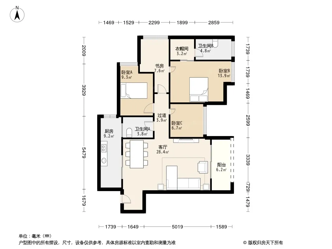 户型齐全,主打户型方正,明卫,明厨,主卧朝南三居