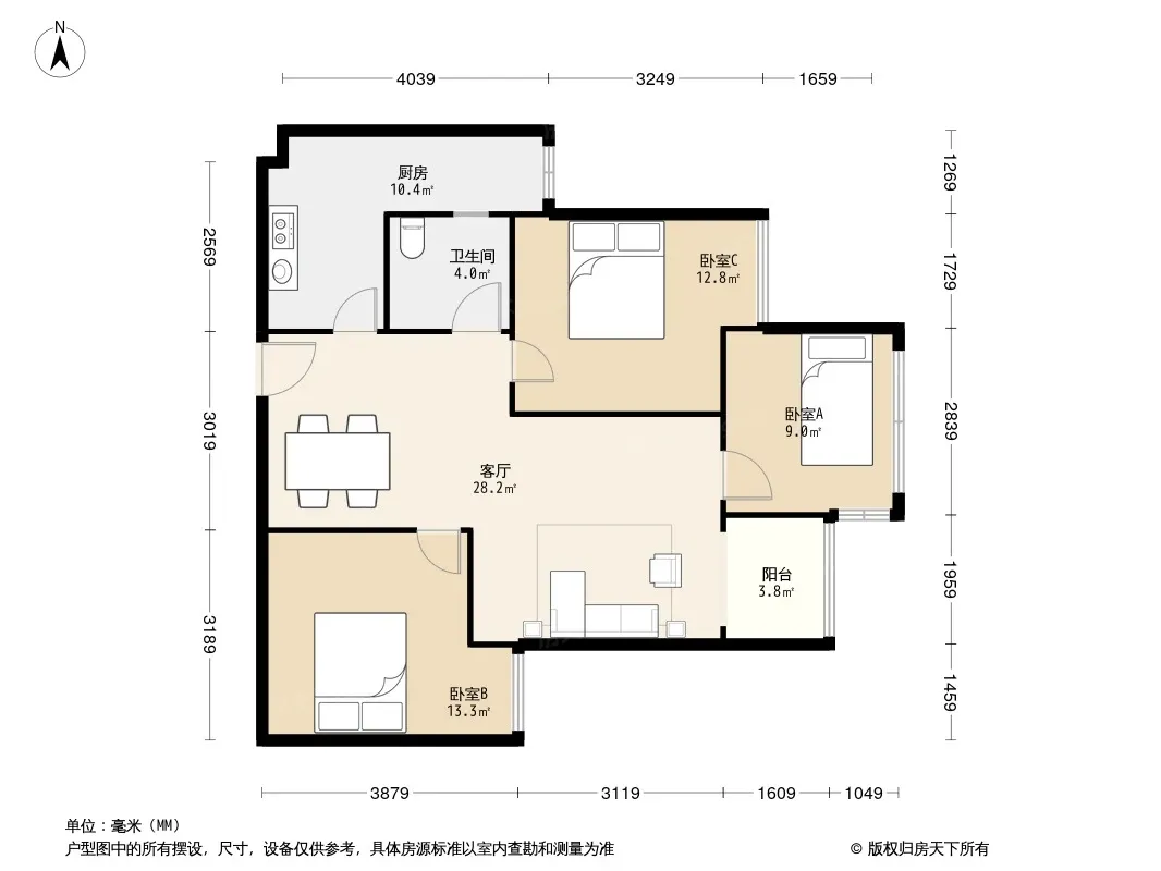 户型齐全,主打户型方正,明卫,双阳台三居