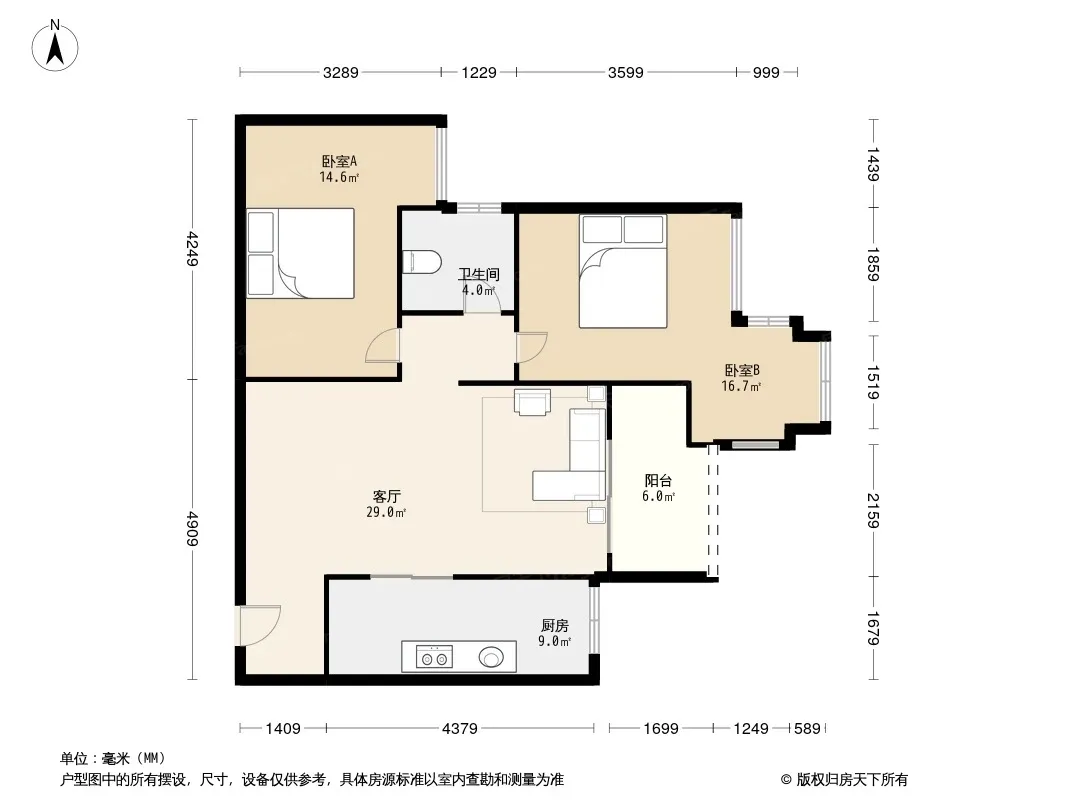 户型齐全,主打户型方正,双卧朝南,主卧朝南二居