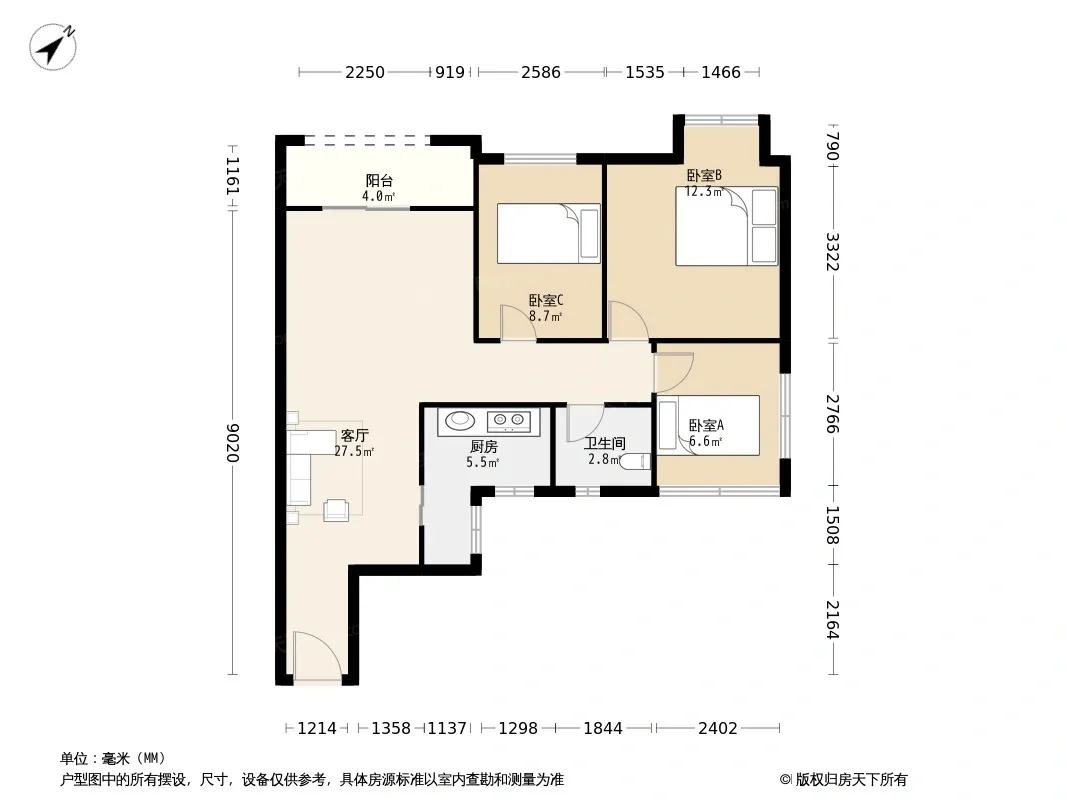 *获取完整户型报告,同时会有免费语音讲解服务
