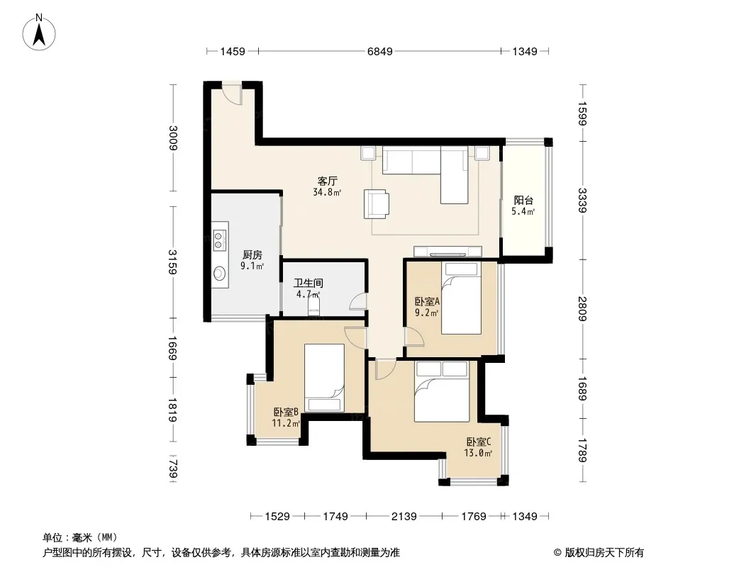 户型齐全,主打户型方正,明厨,客厅朝南三居