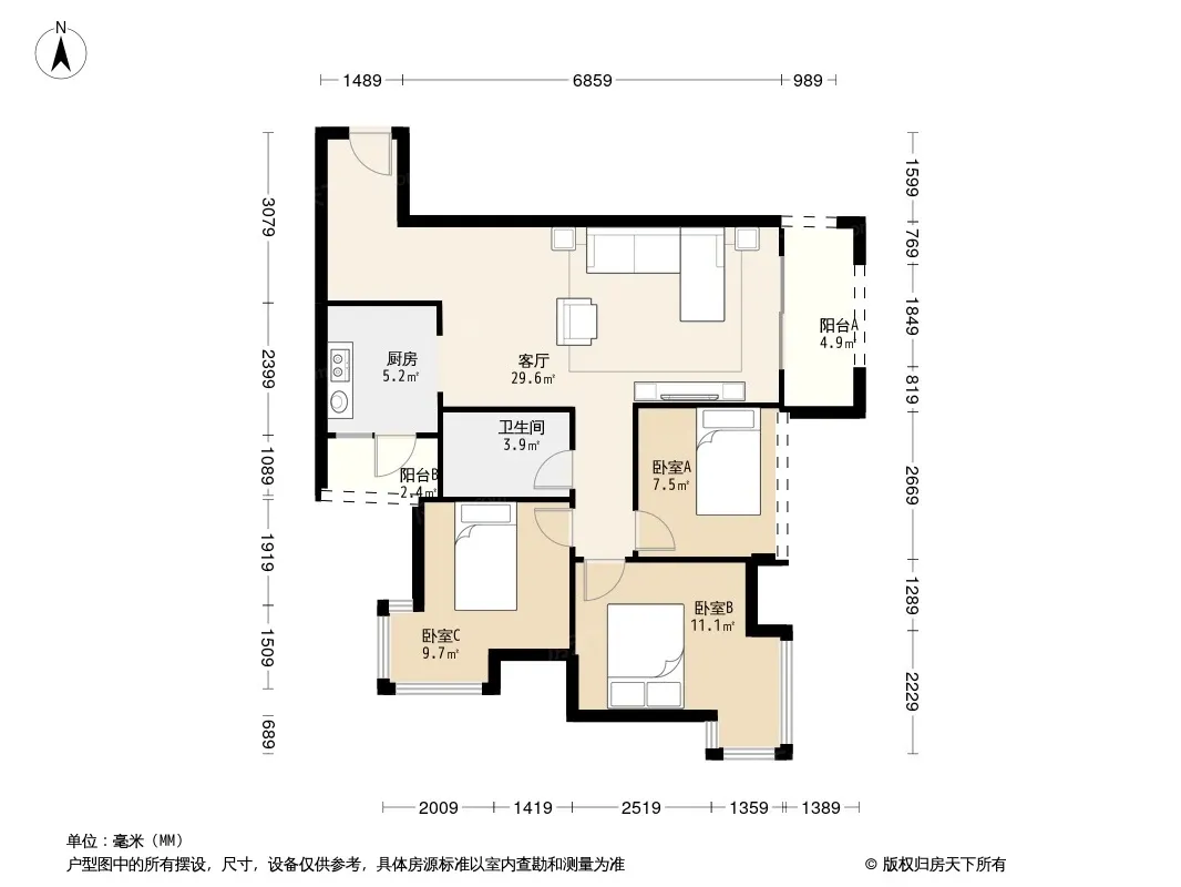 户型齐全,主打户型方正,明厨,客厅朝南三居