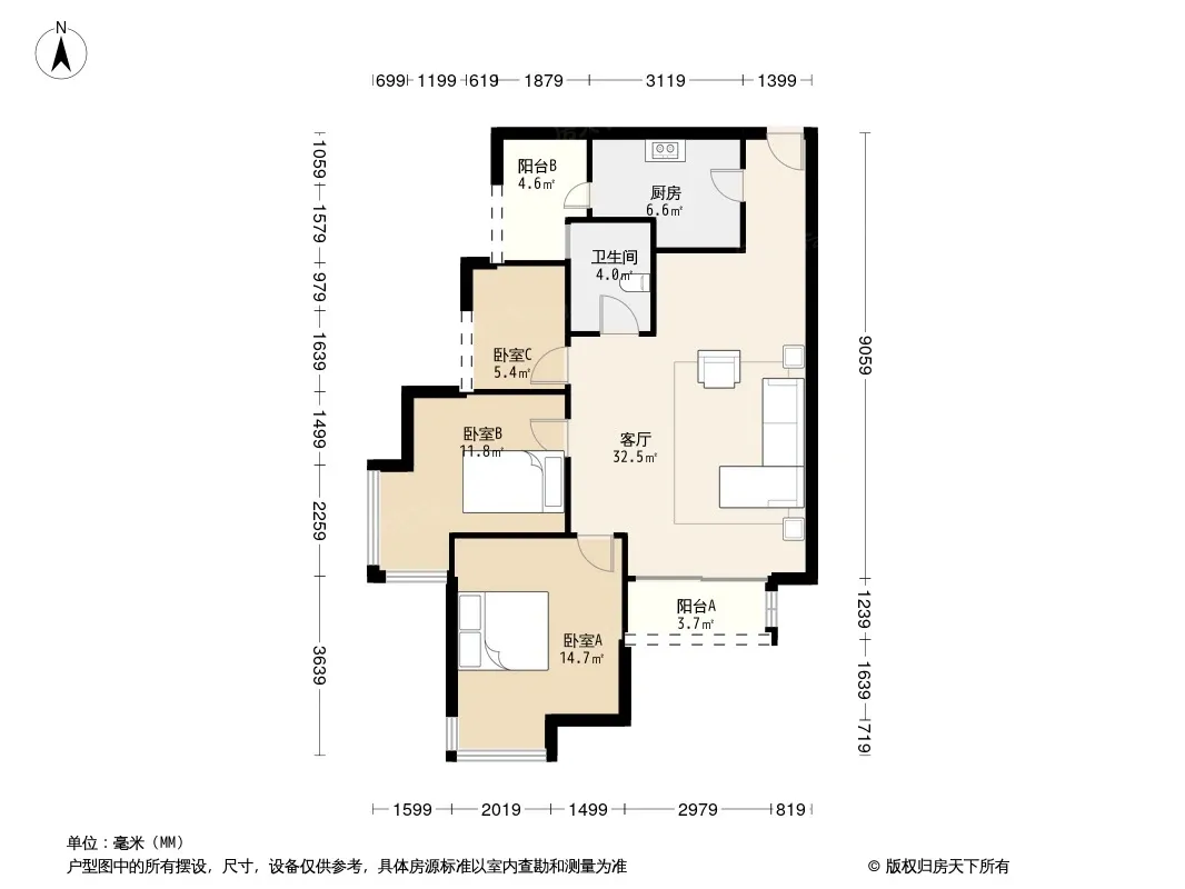 户型齐全,主打户型方正,明卫,双阳台,双卧朝南三居
