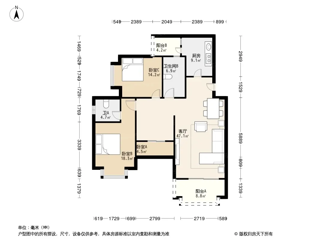 户型齐全,主打明卫,双阳台,主卧朝南三居