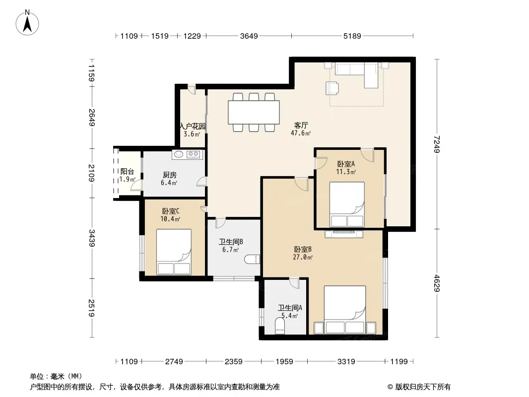 户型齐全,主打户型方正,明卫三居