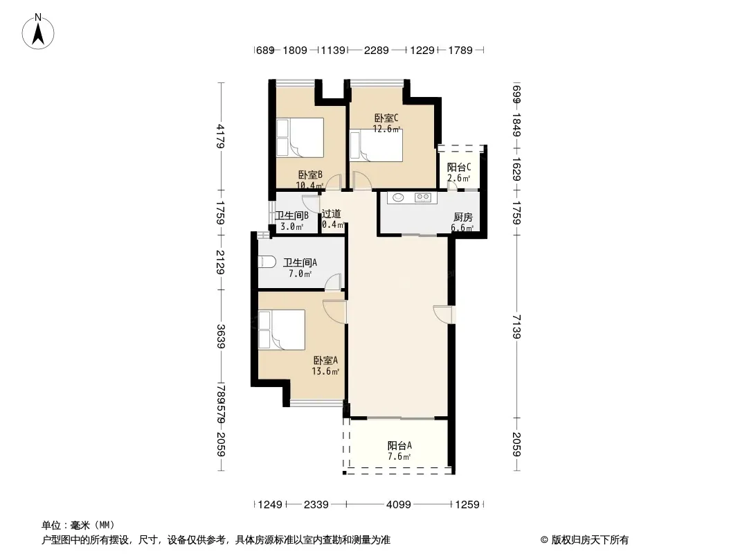户型齐全,主打明卫,客厅朝南,双阳台三居