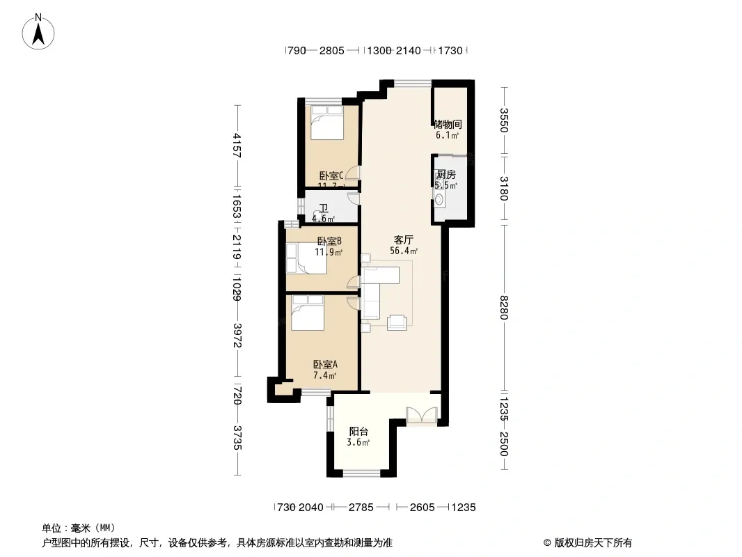 户型齐全,主打明卫,客厅朝南,双阳台三居