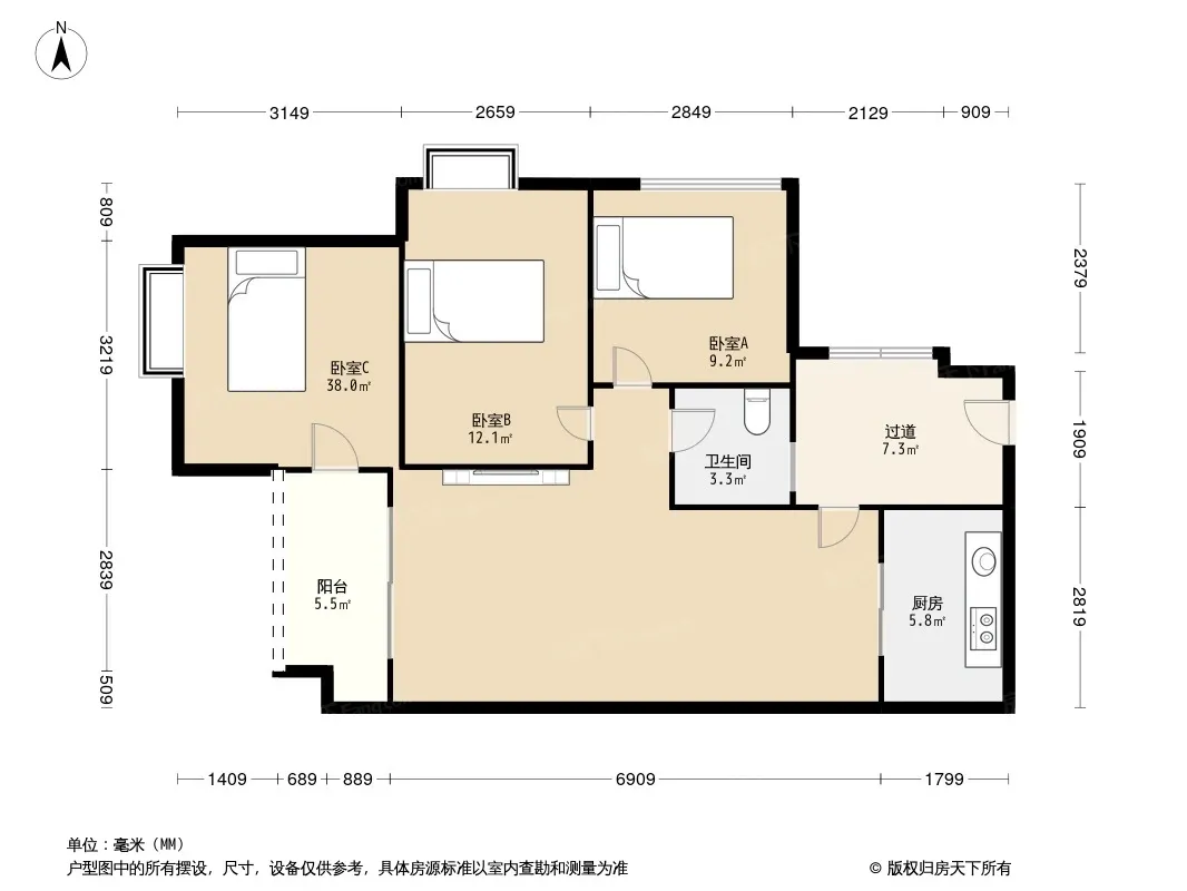 *获取完整户型报告,同时会有免费语音讲解服务