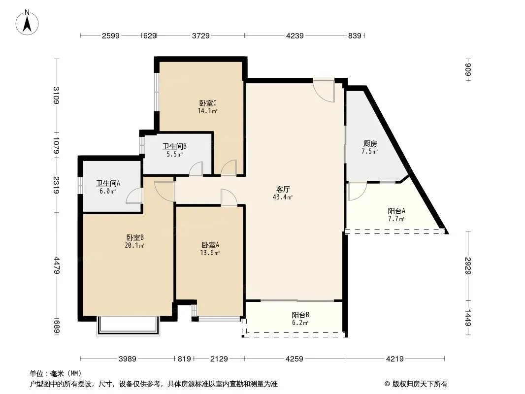 户型齐全,主打南北通透,全明格局,户型方正,动静分离,采光充足三居