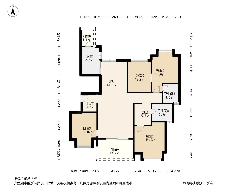 户型齐全,主打南北通透,全明格局,户型方正,动静分离,采光充足三居