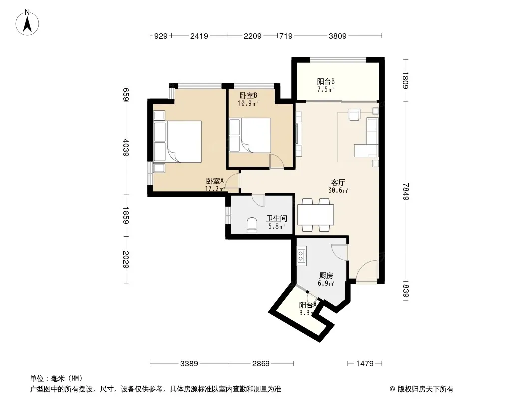 户型齐全,主打南北通透,全明格局,户型方正,动静分离,采光充足三居