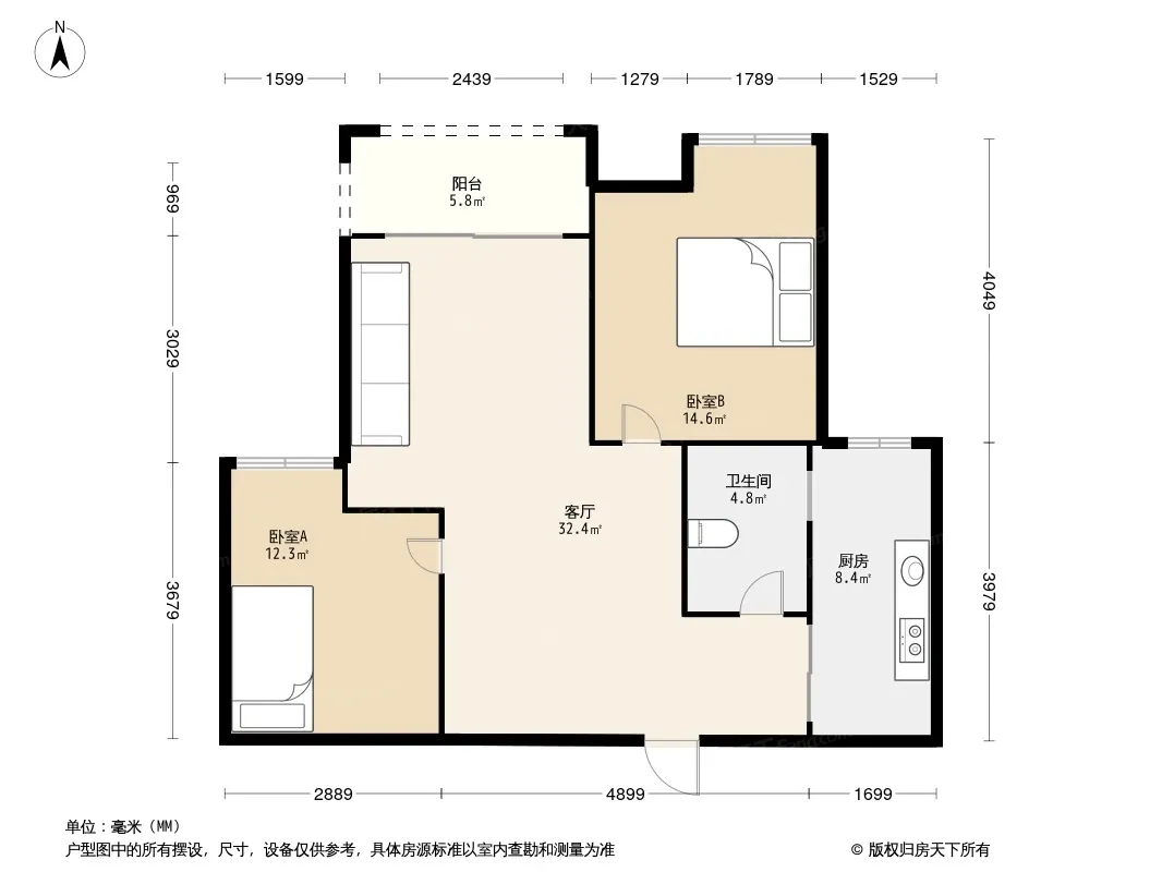 户型齐全,主打户型方正,明厨,明卫,双卧朝南,主卧朝南三居