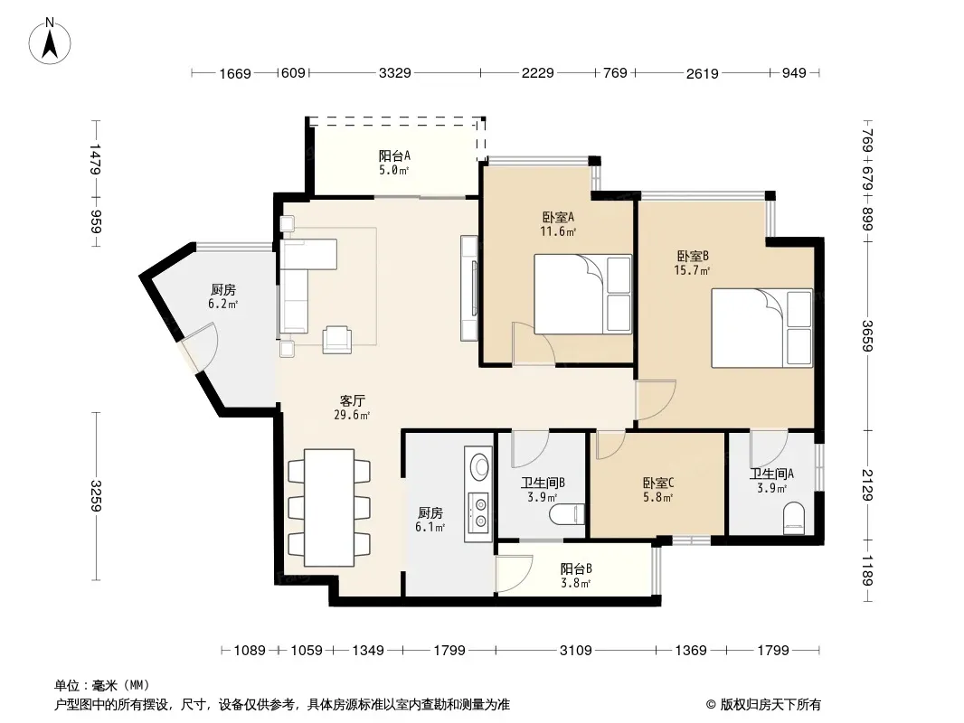 户型齐全,主打明卫,明厨三居