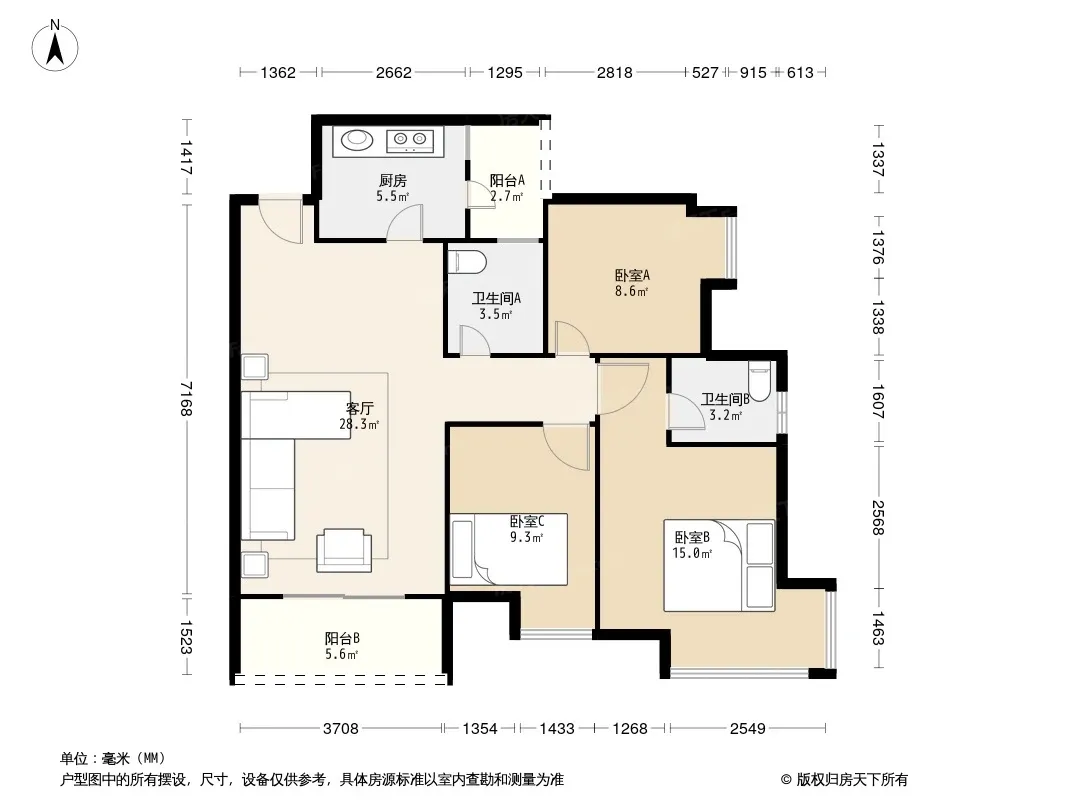 户型齐全,主打明厨三居