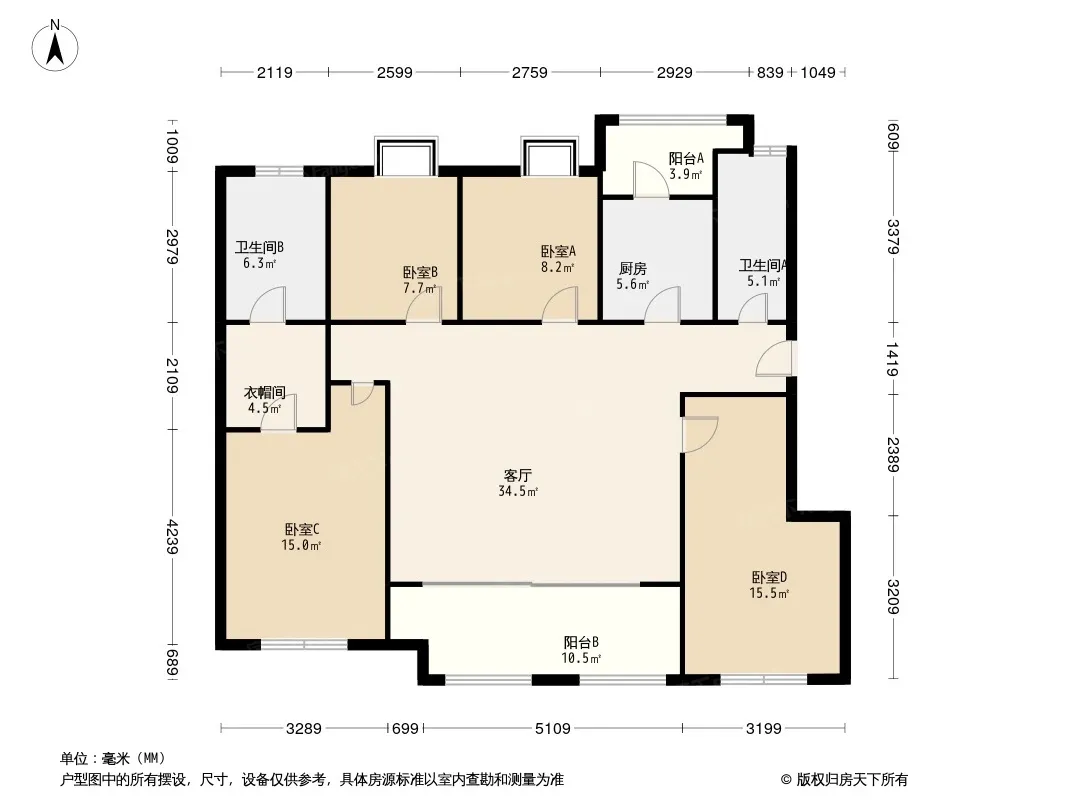 户型齐全,主打高附赠空间,采光充足四居