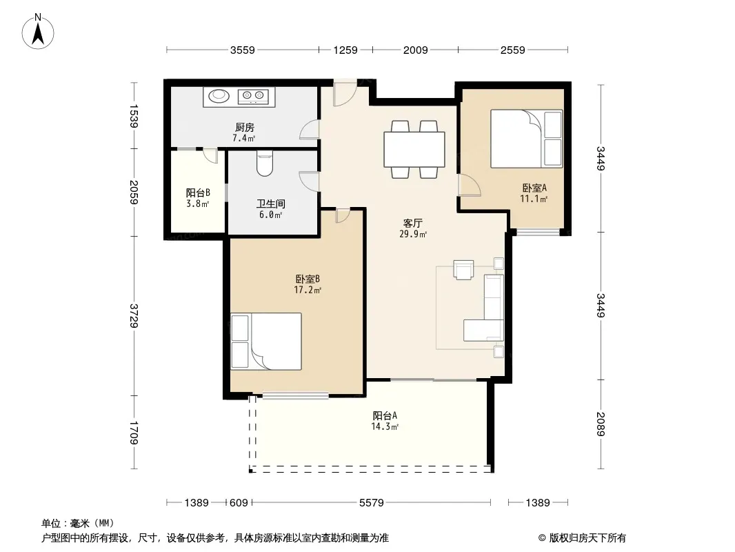 户型齐全,主打户型方正,明卫三居