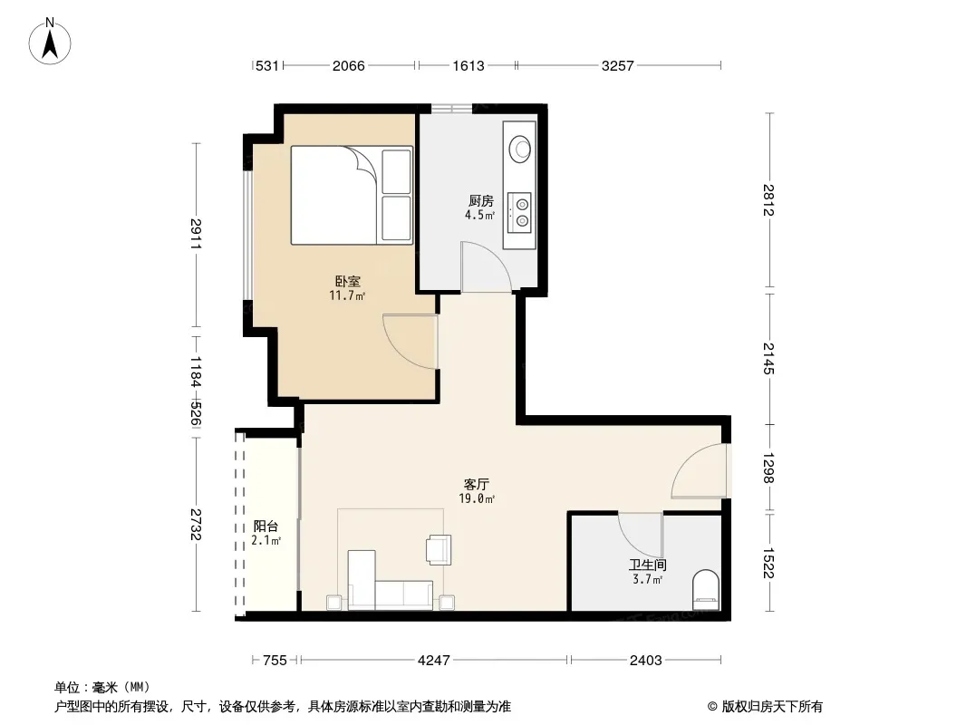 近轻轨 正规一室一厅 精装修 户型方正 采光充足