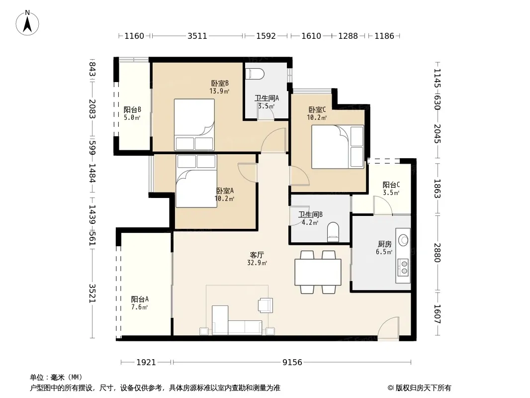 户型齐全,主打明卫三居