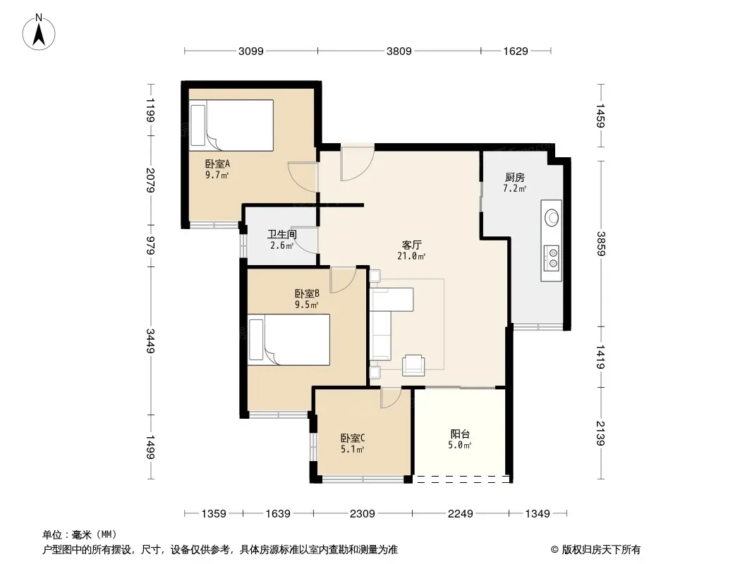 户型齐全,主打户型方正,明厨,客厅朝南三居