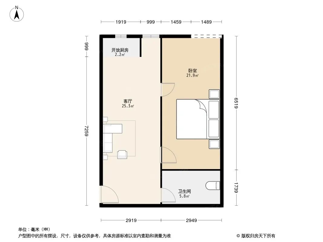 华宇星云汇星领地 2室1厅 南