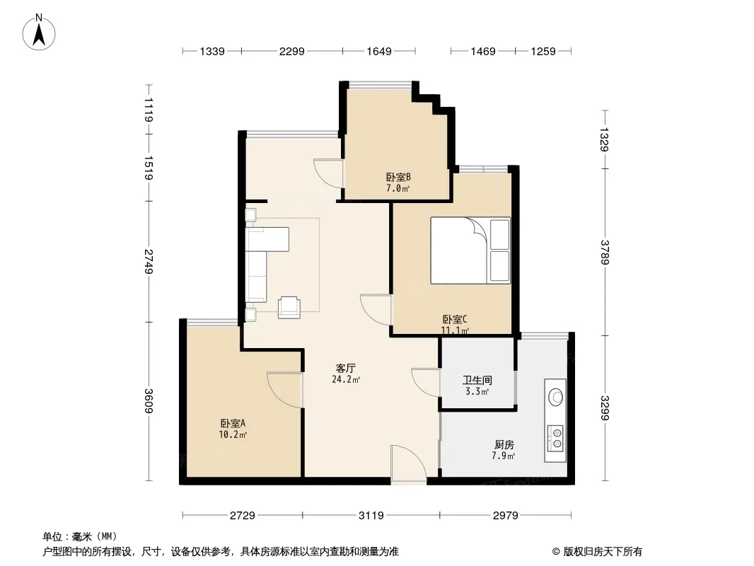 户型齐全,主打明厨,客厅朝南三居
