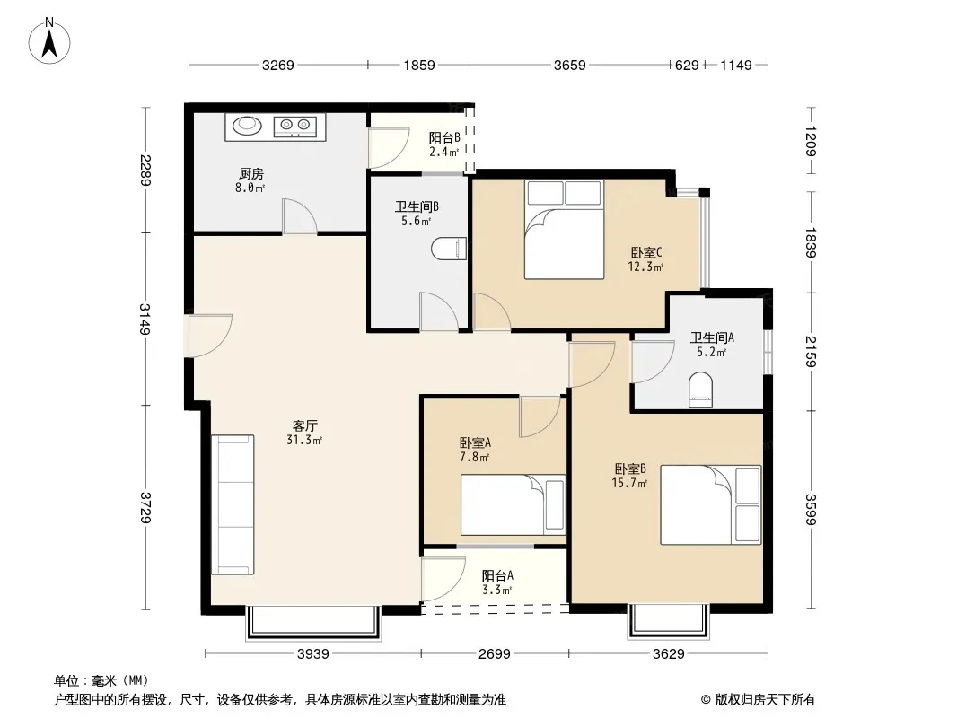 户型齐全,主打户型方正,明卫,双卧朝南三居