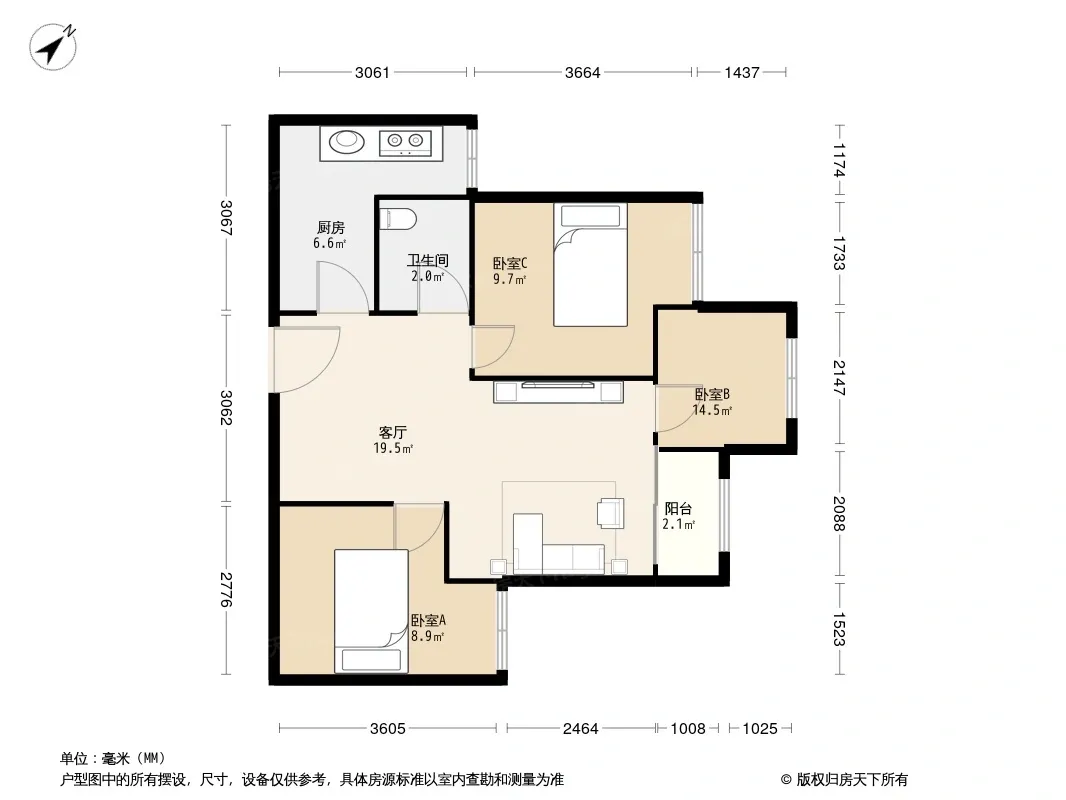 户型齐全,主打明厨,明卫三居