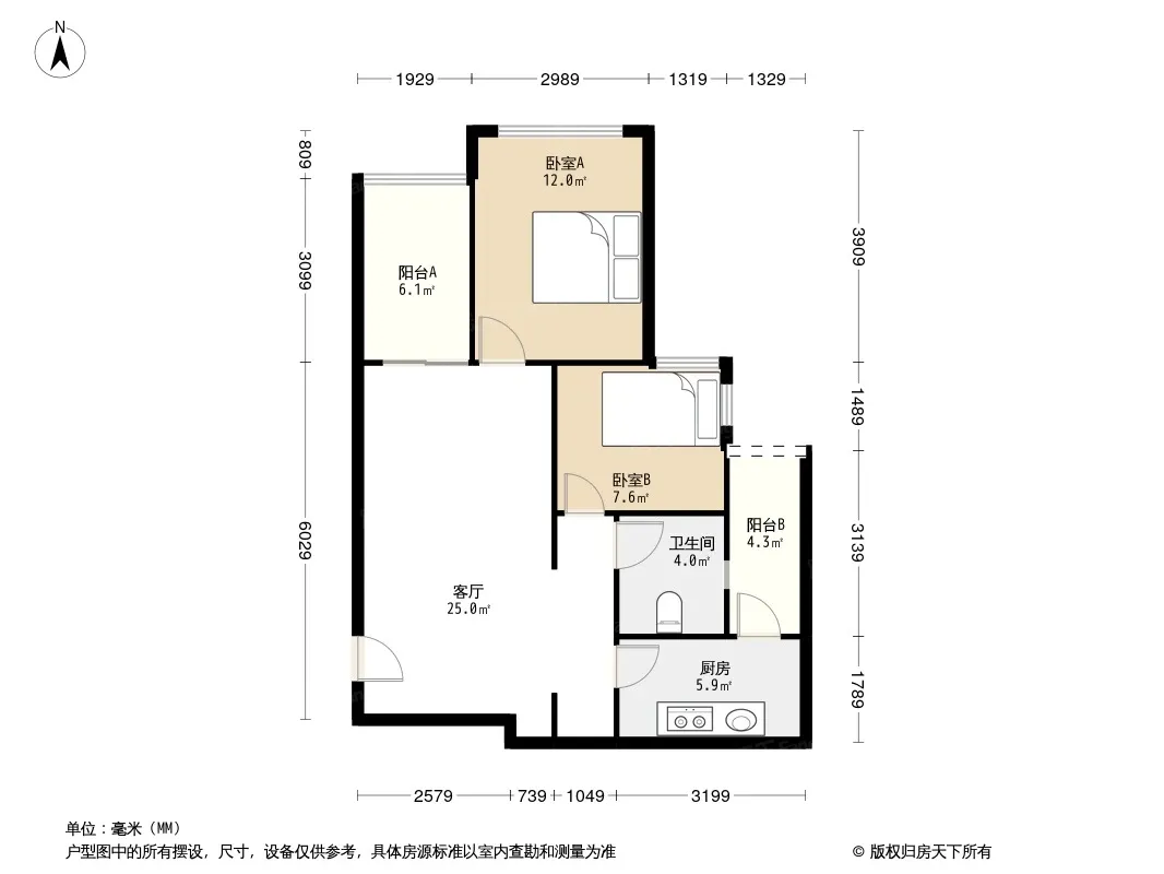 户型齐全,主打全明格局,户型方正二居