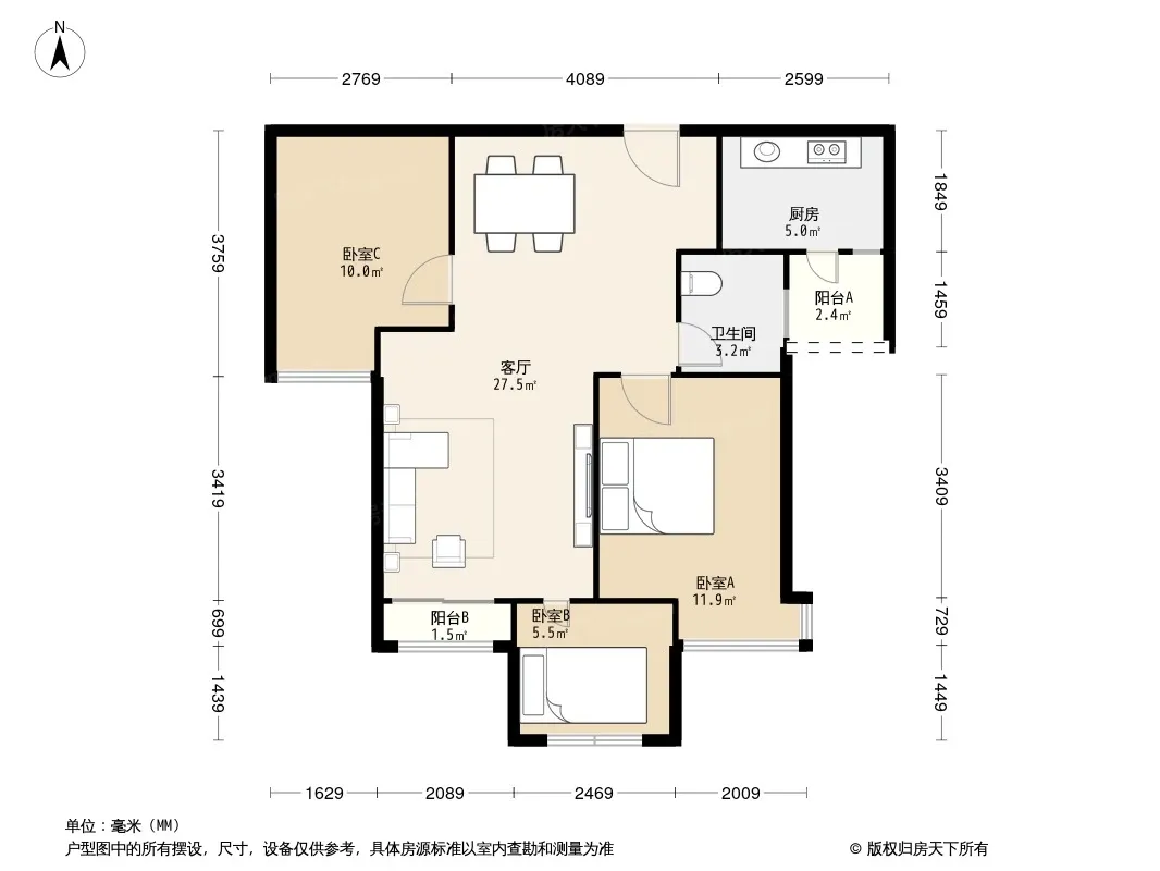 户型齐全,主打户型方正,厨卫不对门三居