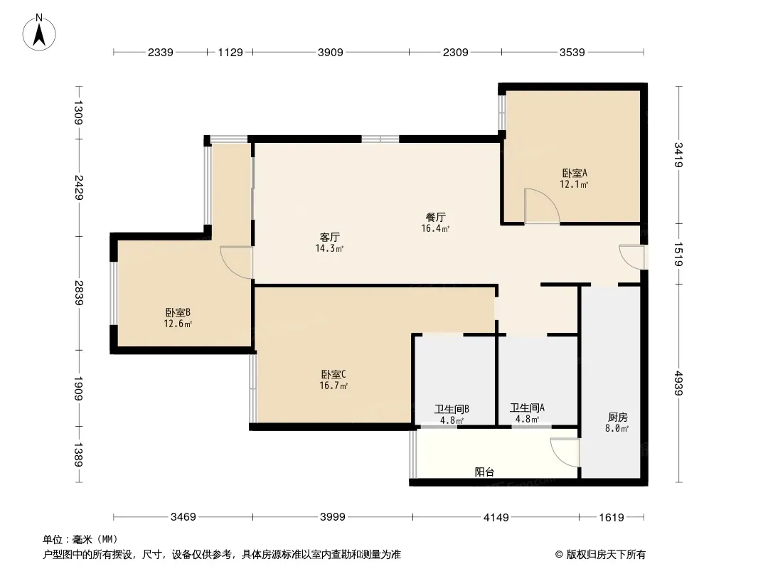 户型齐全,主打户型方正,厨卫不对门三居