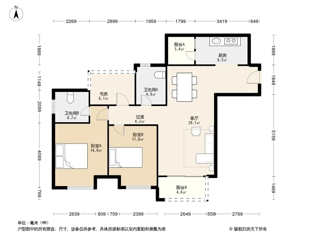 户型齐全,主打户型方正,厨卫不对门三居