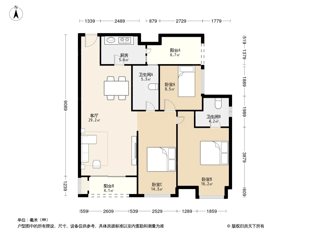 户型齐全,主打户型方正,明厨,明卫,主卧朝南三居