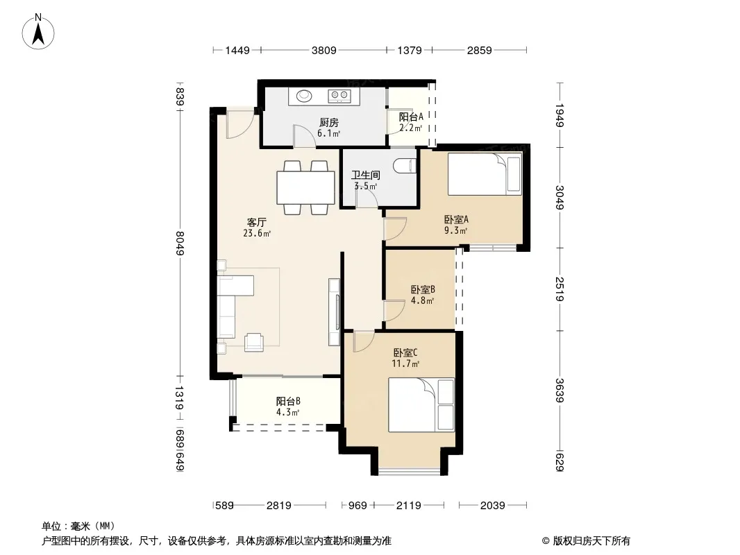户型齐全,主打户型方正,明厨,明卫,主卧朝南三居