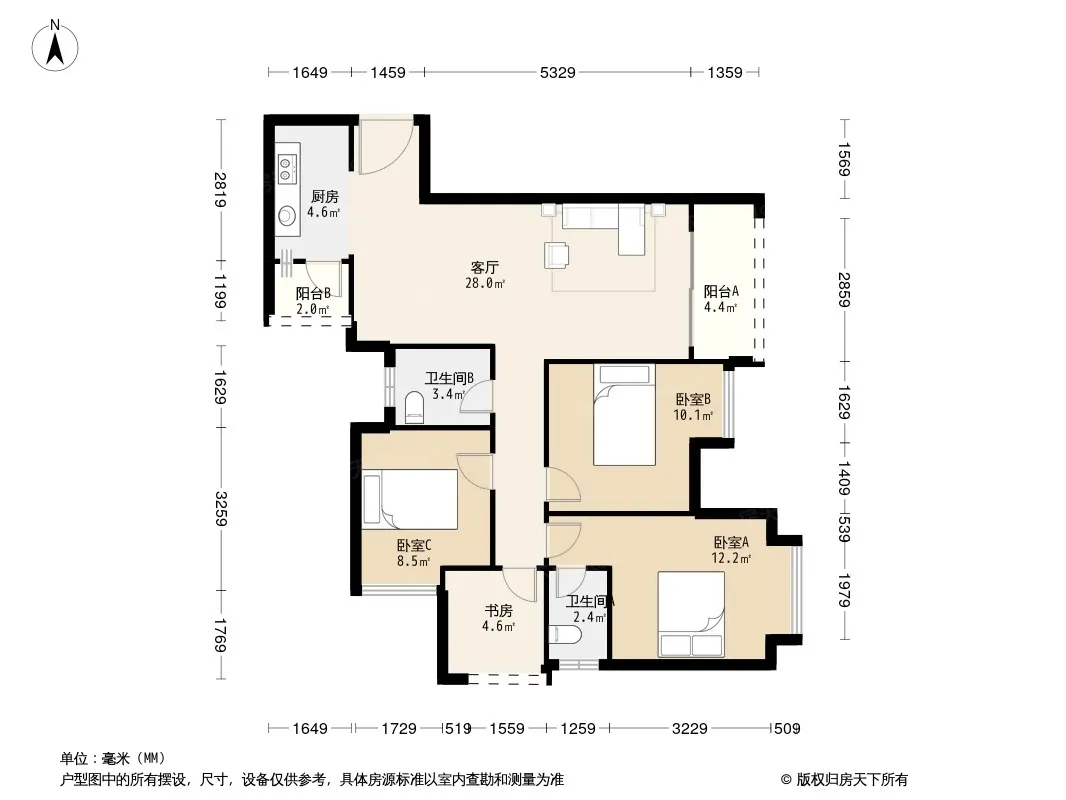 户型齐全,主打户型方正,明卫三居