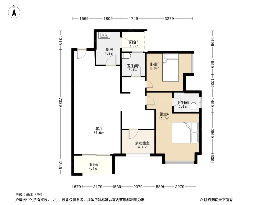户型齐全,主打户型方正,明卫三居