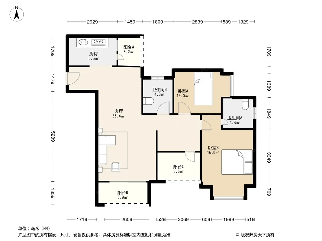 户型齐全,主打户型方正,明卫三居